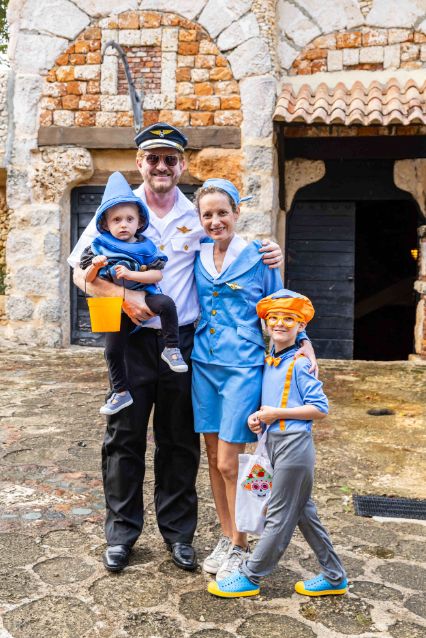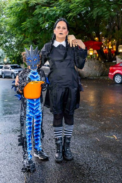 Este año, los disfraces fueron un espectáculo en sí mismos, con una variedad impresionante que incluyó desde los clásicos zombies y brujas hasta creativos personajes como robots, dinosaurios y figuras de la política y el deporte. Familias enteras se unieron a la celebración, muchas de ellas eligiendo temáticas específicas para disfrazarse como un grupo, lo que permitió ver a la familia completa de los Picapiedras, así como a un equipo de la aerolínea PanAm, que incluía al piloto y su azafata.