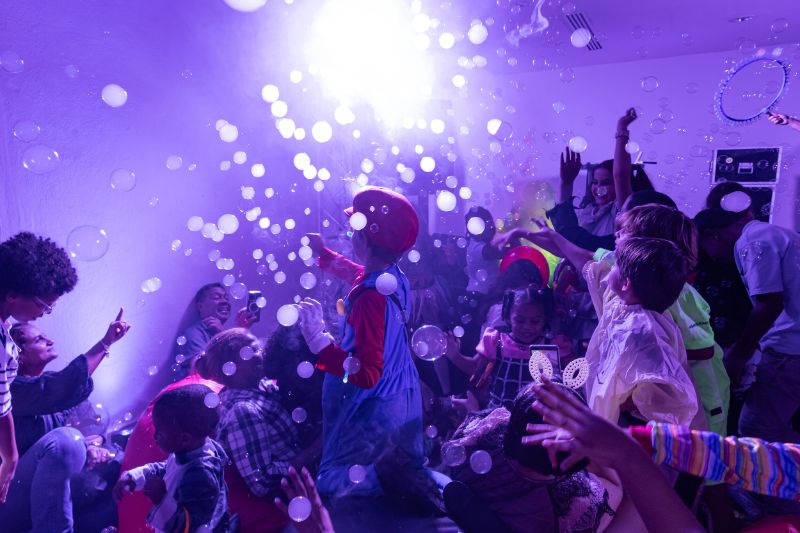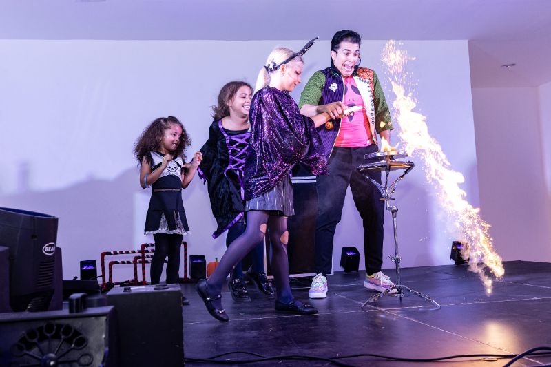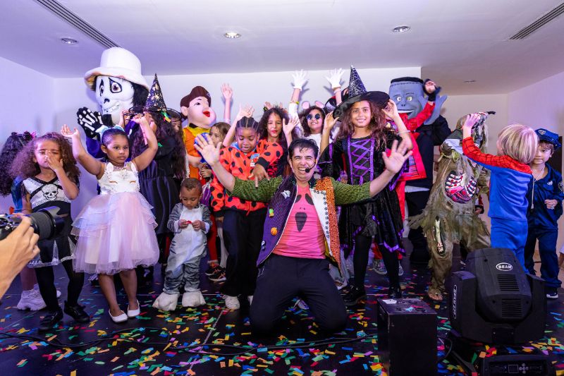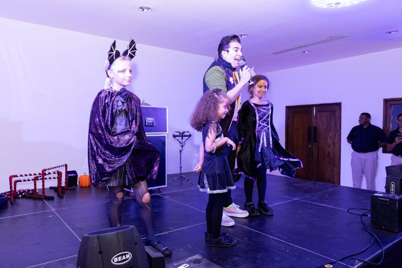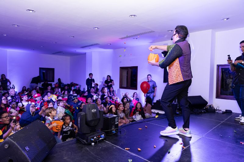 Pero la diversión no terminó ahí. A las 7:00 de la noche, un emocionante espectáculo de magia a cargo del Mago Gody los esperaba en la Casa Caoba de Altos de Chavón. Al ingresar, los niños fueron recibidos con pulseras de luces y gafas divertidas, cortesía del personal de Altos de Chavón.