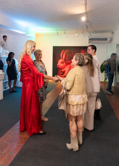 El evento inaugural incluyó un brindis, degustación de finger food y música en vivo, elementos que acompañaron de manera fluida el recorrido por la galería y propiciaron un encuentro cercano entre la obra y los asistentes. Durante la apertura se ofreció una breve introducción conceptual que permitió al público adentrarse directamente en el universo creativo de la artista.